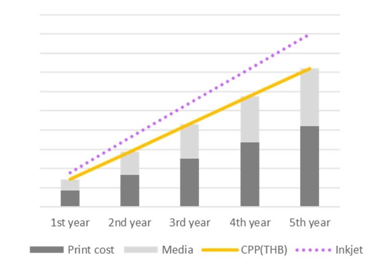 • ช่วยควบคุมค่าใช้จ่าย โดยไม่จําเป็นต้องใช้วัสดุพิเศษที่มีราคาแพง สามารถเลือกใช้ประเภทของกระดาษหรือฉลากได้หลากหลาย